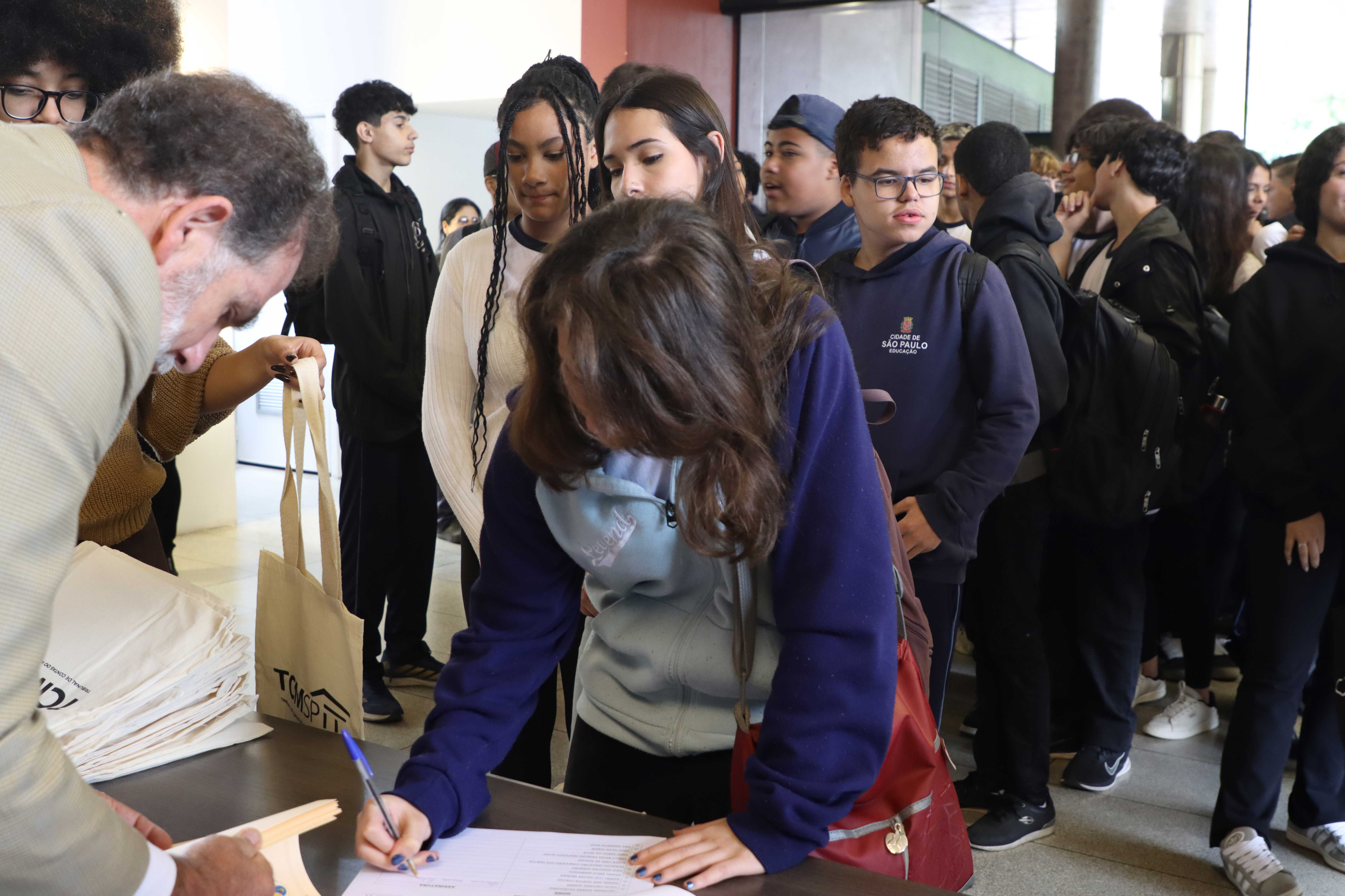 Nesta quarta-feira (24/09), a Escola Superior de Gestão e Contas Públicas (EGC) e o Tribunal de Contas do Município de São Paulo receberam uma visita técnica de 59 alunos do 9º ano da Escola Municipal de Ensino Fundamental (EMEF) Martin Francisco Ribeiro de Andrada, localizada na Vila Mazzei, na Zona Norte de São Paulo. Os estudantes participaram da nova edição do Programa Jovem no Controle Social (PJCS) e foram acompanhados por quatro professores daquela escola municipal.