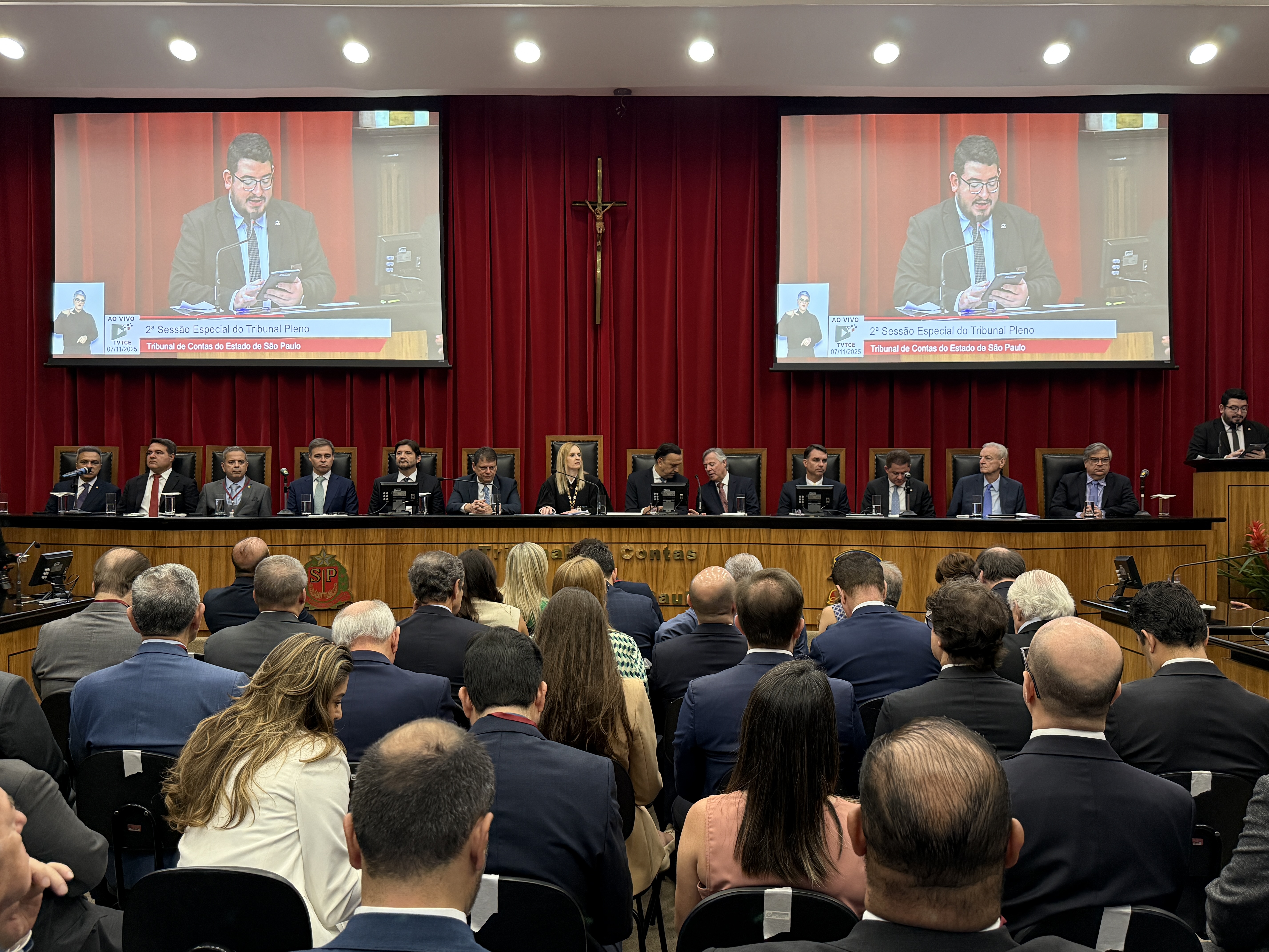 Entre as demais autoridades presentes estavam: Presidente do TCE-SP, Conselheira Cristiana de Castro Moraes; Governador do Estado de São Paulo, Tarcísio de Freitas; Vice-Governador do Estado de São Paulo, Felício Ramuth; Presidente da Assembleia Legislativa do Estado de São Paulo (Alesp), Deputado André do Prado; Vice-Presidente do Tribunal de Justiça do Estado de São Paulo (TJ-SP), Desembargador Artur César Beretta da Silveira; Ministro do Supremo Tribunal Federal, André Mendonça; Senador da República, Flávio Bolsonaro; Senador da República, Rogério Marinho; Deputado Federal, Cezinha de Madureira; Vice-Presidente do TCU, Ministro Jorge Antônio de Oliveira Francisco; Presidente da Associação dos Membros dos Tribunais de Contas do Brasil (Atricon), Conselheiro Edilson Silva; Procuradora-Geral do Ministério Público de Contas, Letícia Formoso Delsin Matuck Feres; Procurador-Chefe da Fazenda do Estado, Denis Dela Vedova Gomes; Secretário-Diretor Geral do TCE-SP, Germano Fraga Lima; e Conselheiro Emérito do TCE-SP, Dr. Antonio Roque Citadini.