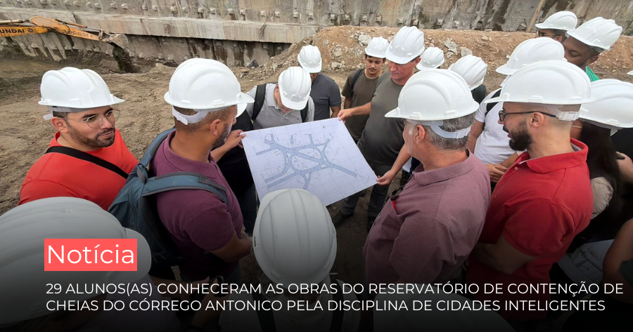 Na última terça-feira, 7 de abril, 29 alunos da turma de cidades inteligentes, matéria ministrada pela professora Harmi Takiya, no curso “Engenharia Civil: Infraestrutura e Obras Públicas” da Escola Superior de Gestão e Contas Públicas do TCMSP, realizaram uma visita às obras do Reservatório de Contenção de Cheias do Córrego Antonico, também conhecido como Piscinão do Morumbi. A atividade externa teve o intuito de conhecer o projeto e estudar tanto a estrutura como as melhorias que sua implementação trará para o bairro.
